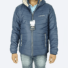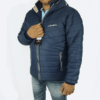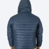 Lightweight navy blue hooded puffer jacket with warm insulation, wind protection, and secure zip pockets for everyday winter comfort.