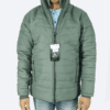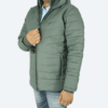 Lightweight olive green hooded puffer jacket with warm insulation, wind protection, and secure zip pockets—perfect for everyday winter comfort.